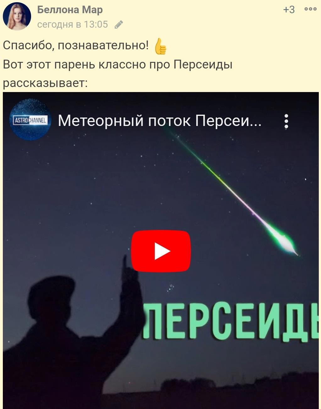 Метеорный поток Персеиды ожидается на этой неделе, 08-05-2023