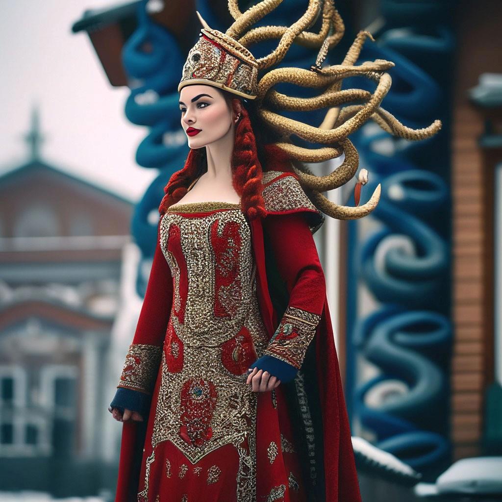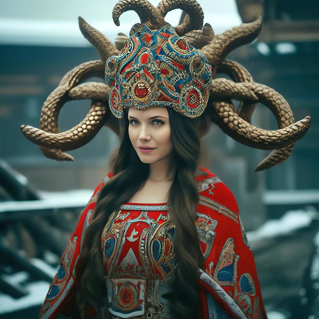 Но вернемся на наши с вами исторические корни. Медуза Горгона в кокошнике из змей ждет отряд монголо-татар. Враг не пройдет! Евпатий, ты не у дел, сори!