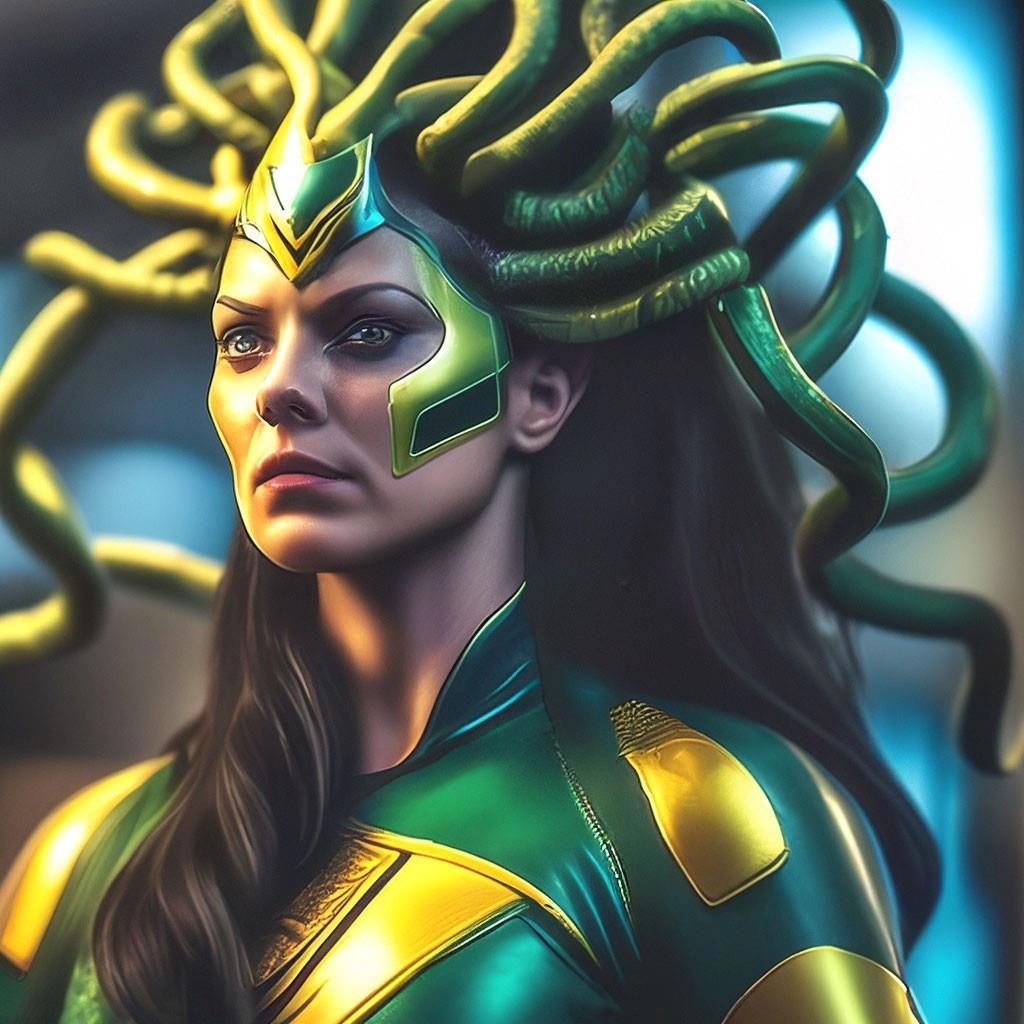 Смесь Алой ведьмы и Медузы, это гремучая смесь. Колдовство бы умножилось во сто крат. И наверное такой супергерой был бы непобедим.