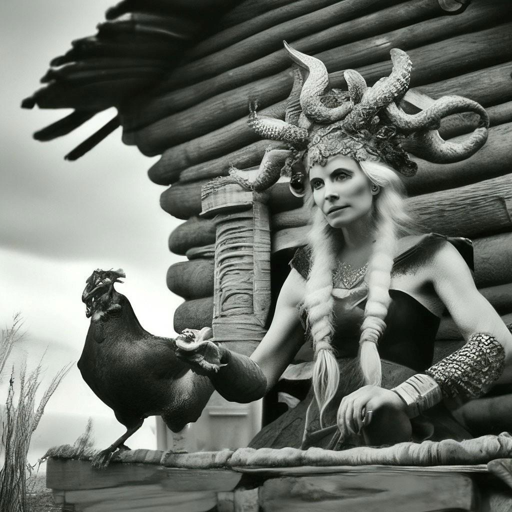 Баба-яга, которая по одной версии имеет греческие корни (она была амазонкой), с ручкой змей на голове. У такой Медузы всякие там Иван-Царевичи и по совместительству Дураки не баловали. Она бы их точно не кормила и не поила, да и в баньке не парила.
