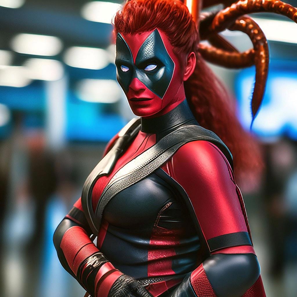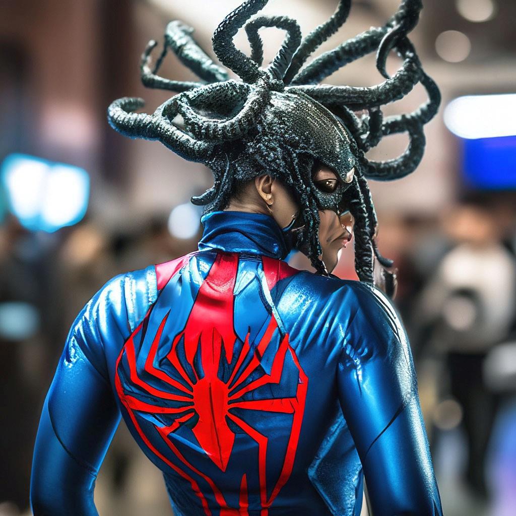 Другое дело, если бы вампиром была сама Горгона. Вот она в костюме Морбиуса, вампира антагониста, противника Человека-паука.