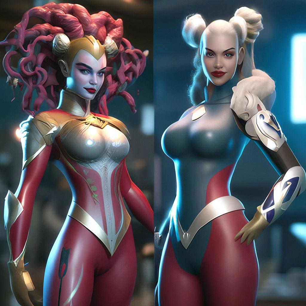 Скрещивая Медузу Горгону и Харли Квинн, нейросеть мне выдала двойную версию персонажа. Выбирай любую!