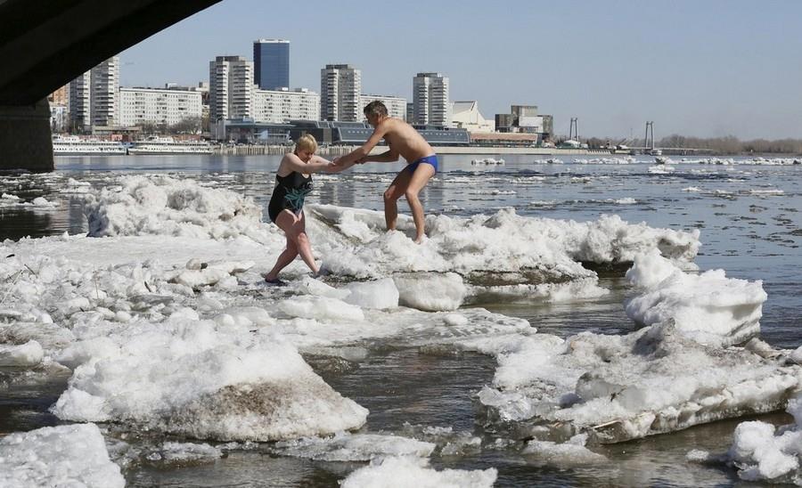 Некоторые , превозмогая боль и холод старались радоваться жизни отплевываясь от льдин.