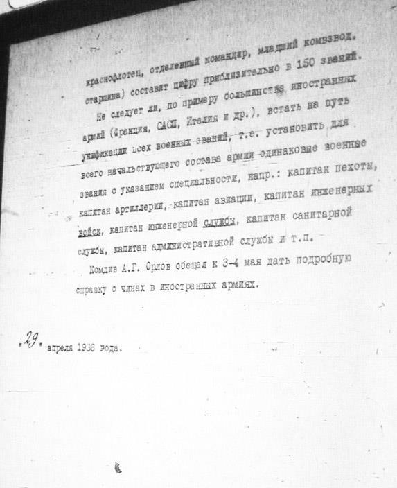 Комдив А.Г. Орлов[1] обещал к 3 – 4 мая дать подробную справку; о чинах в иностранных армиях.