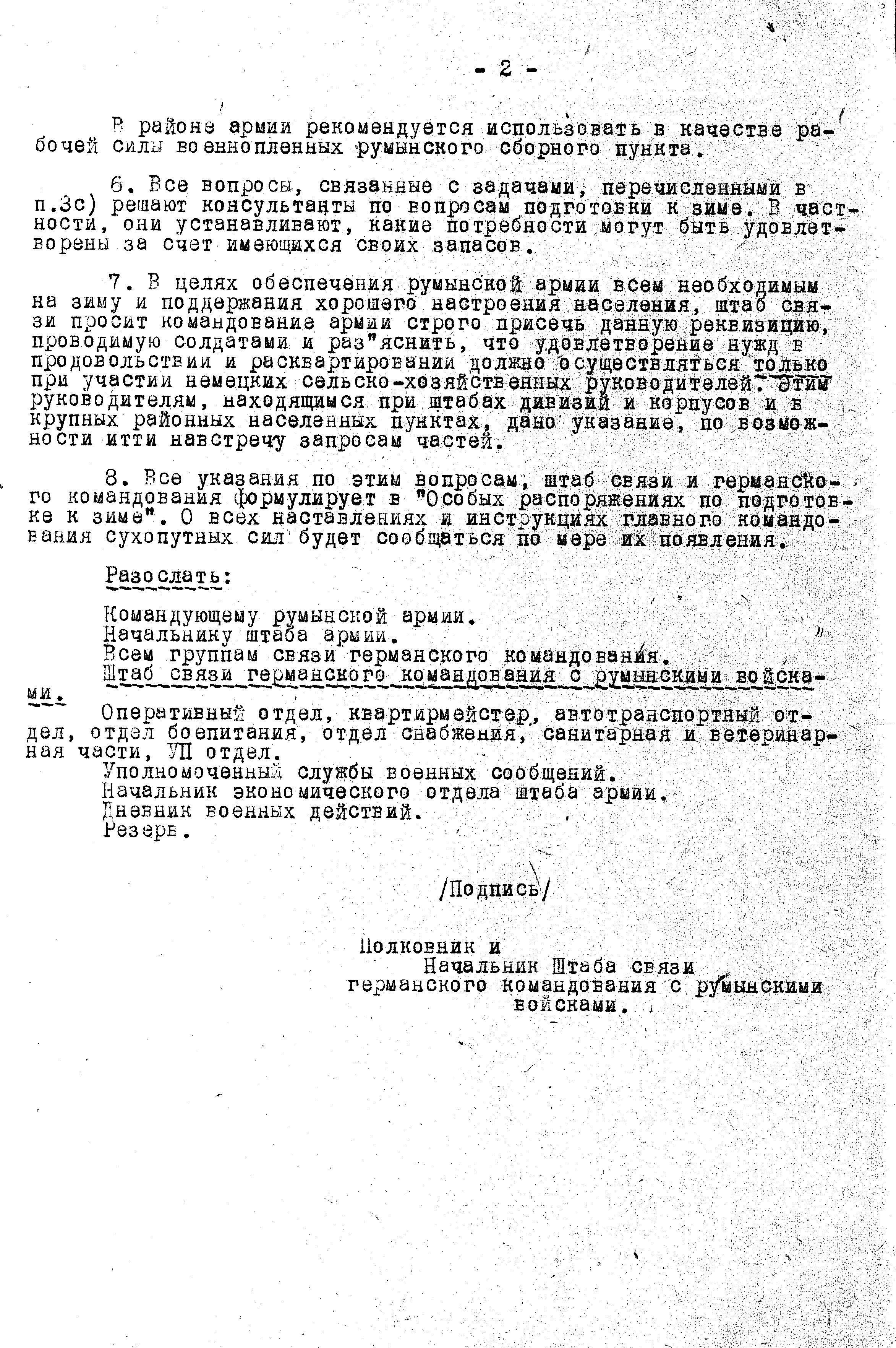 Распоряжение для румынской армии краткое и по сути сводится к двум положениям: