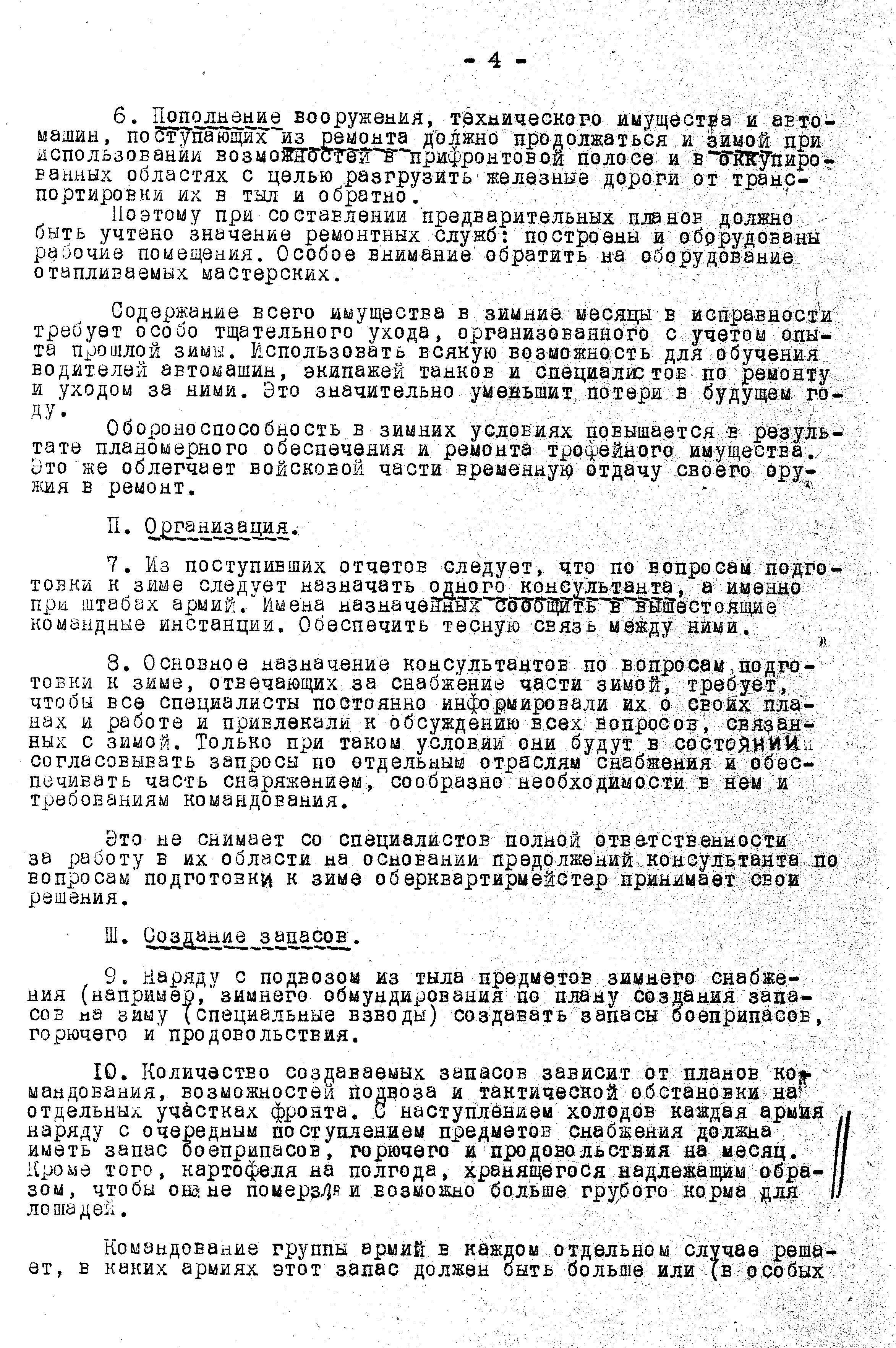 Не стал разделять публикацию на две части, так как второй документ - продолжение и дополнение первого. И указание по подготовке к зиме, в равной степени касалось как германских войск, так и их союзников.
