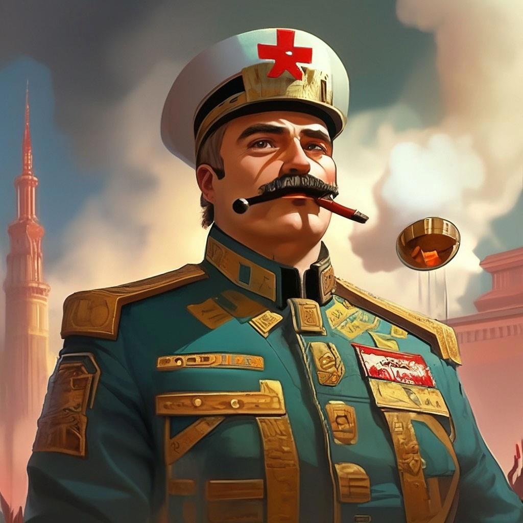 Сталин более похож на Сталина. Советская звезда, правда стала какой-то странной. Да и во рту трубка странная, будто Иосиф Виссарионович решил покурить два вейпа одновременно.