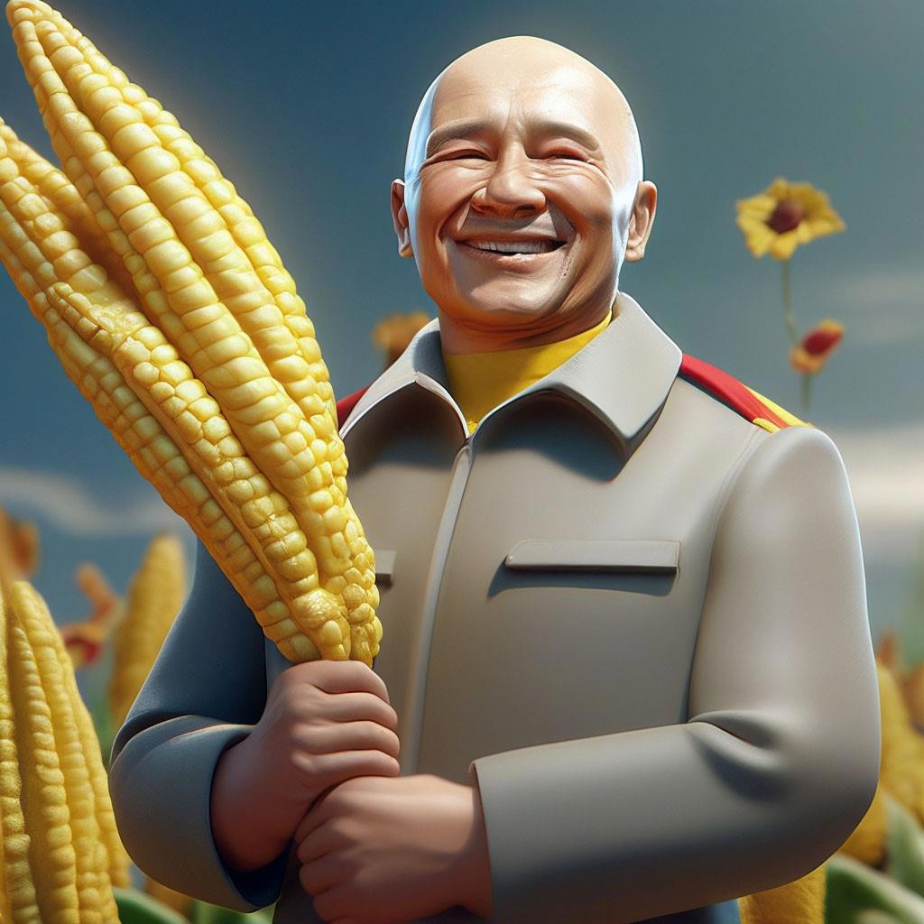 Ну и куда мы без любителя попкорна? Хрущев получился с монголоидными чертами лица, но все же был узнаваем, отчасти из-за початка кукурузы в руке.