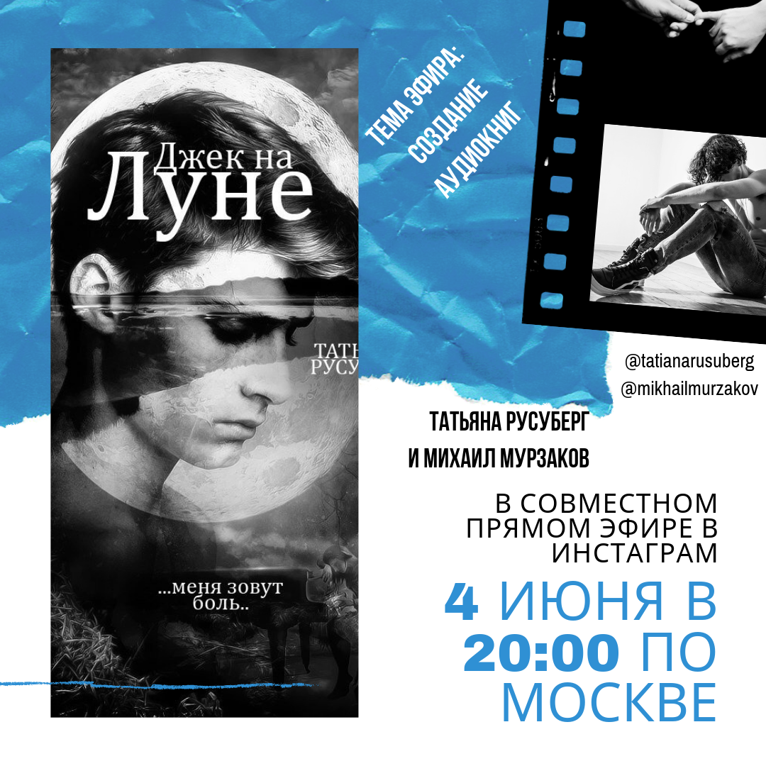 Автор: Татьяна РусубергВсем, кому интересно услышать об этом, заходите на прямой эфир в Инстаграм к нам с Михаилом Мурзаковым. Вы сможете задать вопросы об аудиокнигах и заглянуть в студию, где Михаил делает озвучку - в том числе моего "Джека на Луне". Михаил также расскажет о своем новом проекте по озвучиванию книг, расказывающих о проблемах современных подростков и общества, в котором они живут.