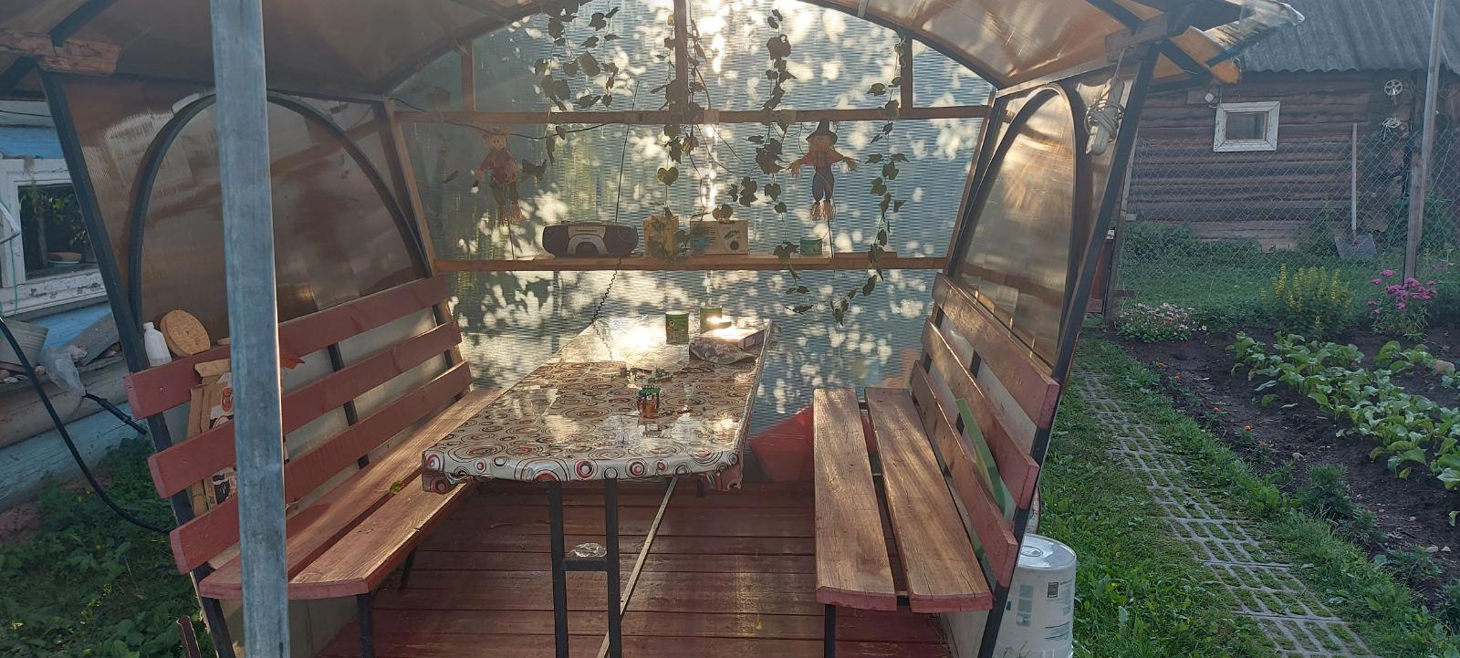 В беседке проводили много времени. Слева виднеется окошко бани.