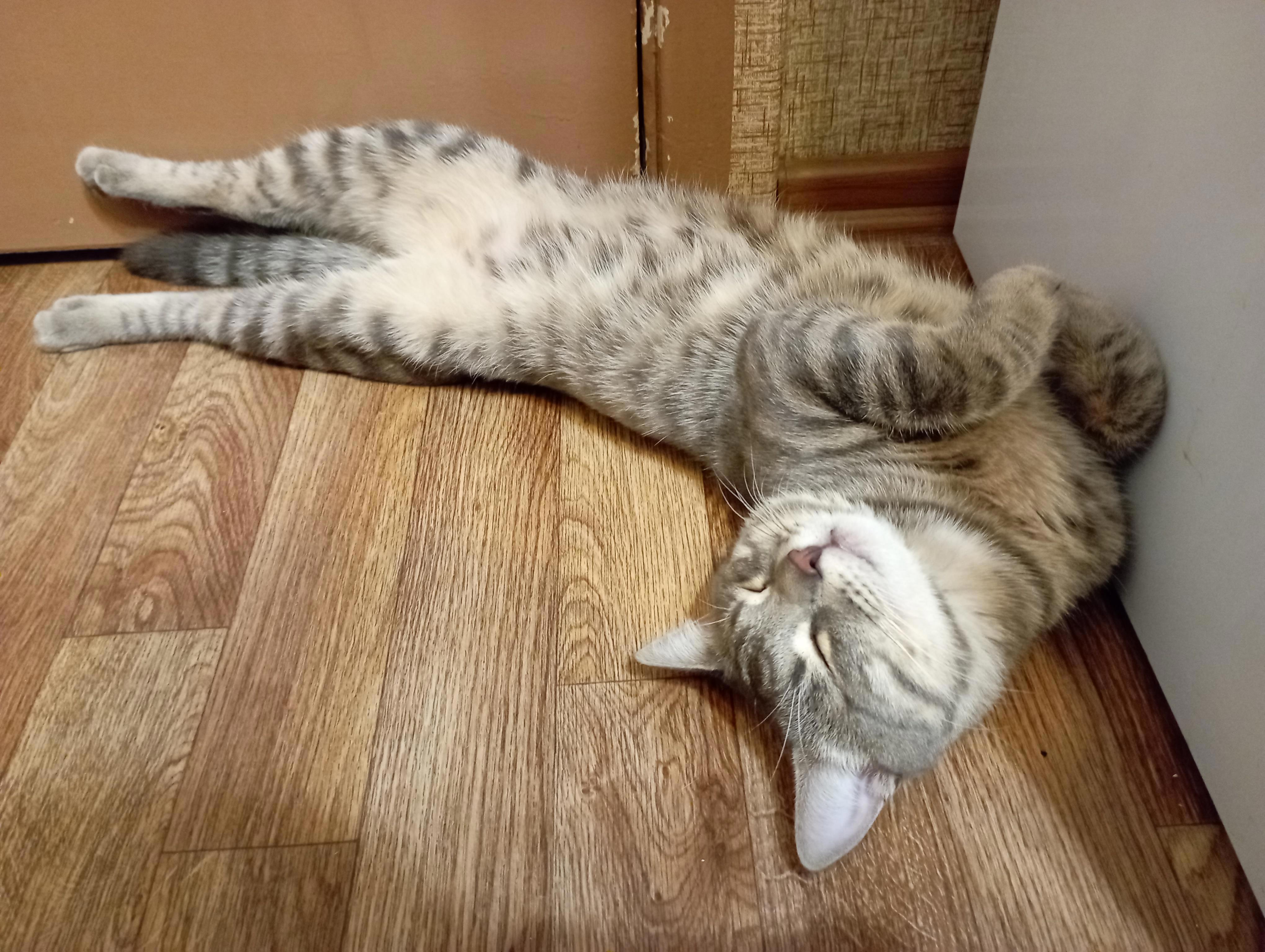 В общем, кота мы забрали к себе, понимая, что из подъезда кота выгонят, а на улице он погибнет очень быстро. Найдёныш поселился у нас на балконе. Свозили парня к ветеринару, выяснилось, что коту 2-3 года, некастрированный, явно домашний, даже без блох, клещей и прочей живности, характерной для уличных кошек.