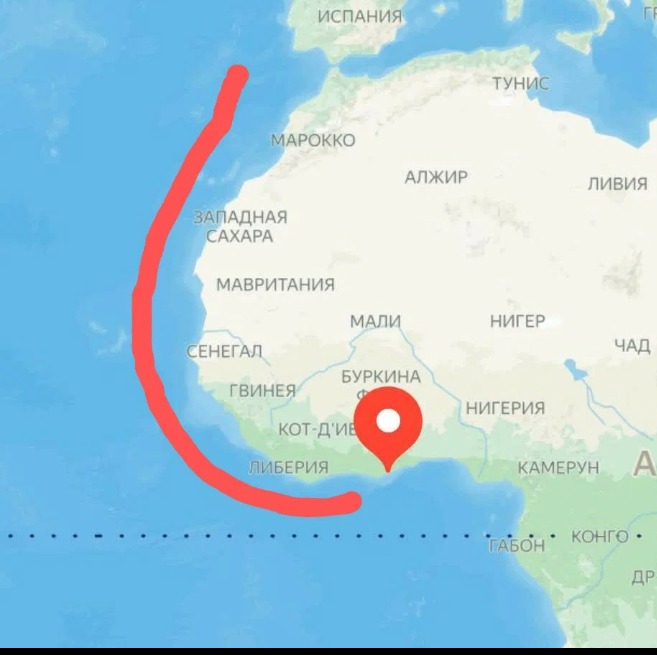 Примерный район "боевых действий" Инглэнда. Маркером помечен Корсо-Касл (Кейп-Кост)