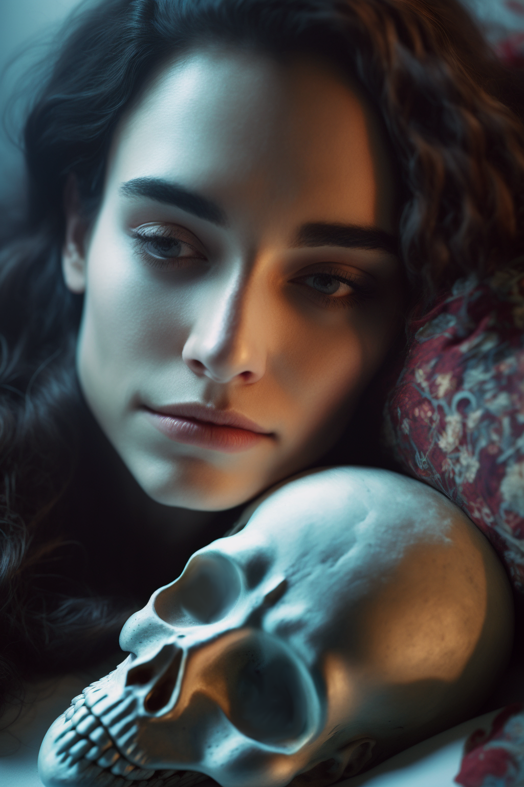 Потом она взяла и поставила череп рядом с монитором и посмотрела на лицо человека на экране.