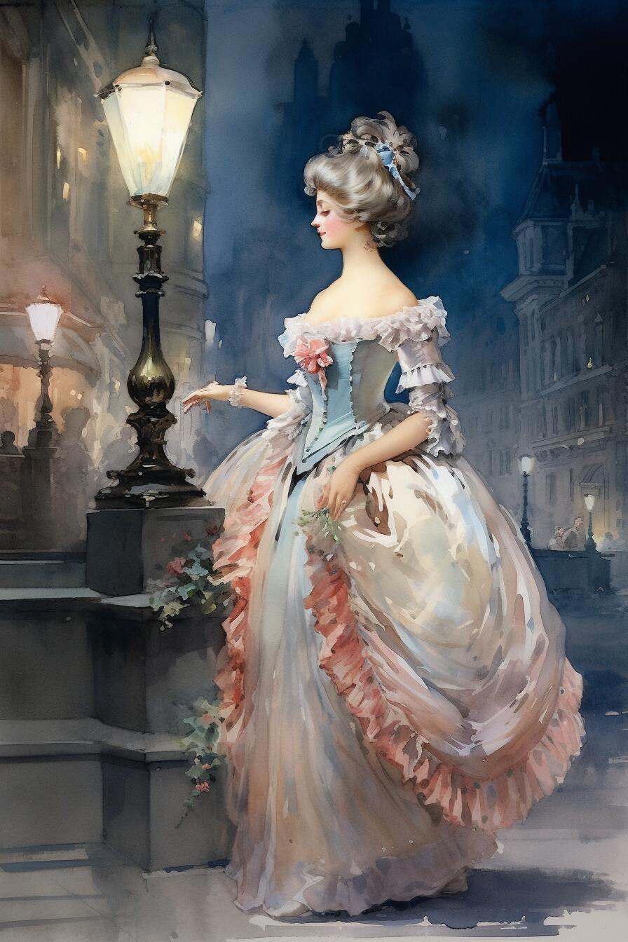 Формат картинки, кстати, может быть любой. Просто обложечный вертикальный формат в блоге чуть хуже выглядит, я выбрал горизонтальные картинки, чтобы было легче их рассматривать. Но сделать картинку для обложки Проблембо тоже может. Смотрите, какая воздушная барышня! Рококошная картинка, имитирующая акварель: