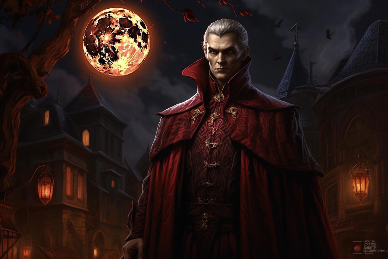 А вот так Проблембо вписывает в фантастический пейзаж фигуру - мрачный город вампиров и его обитатель, кровавая осень: