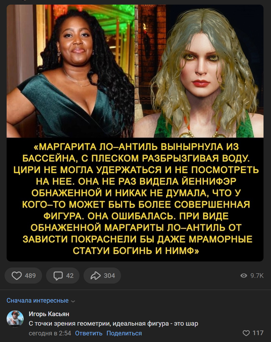 Мужчины… В целом, смотрелись чуть лучше. Ну там, накачанный эльф с побритыми в барбершопе височками, Лютик из Расмус, Эмгыр в своих пластмассовых доспехах, Вильгефорц, сбежавший из Багдада или Персеполиса, няшненький Радовид…