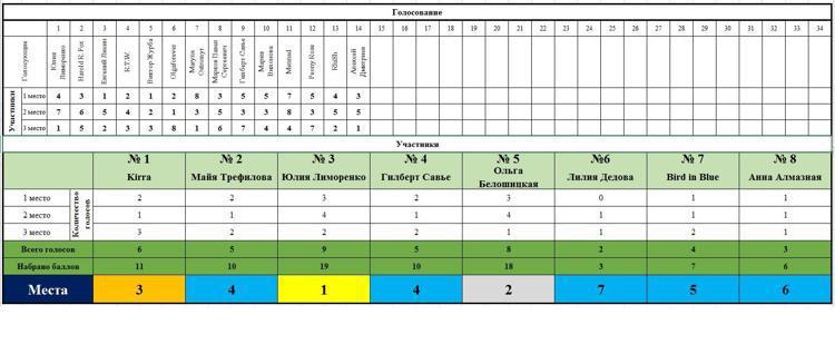 Также большое спасибо участнику игры-марафона Алексею Дмитриеву за таблицу с результатами голосования.