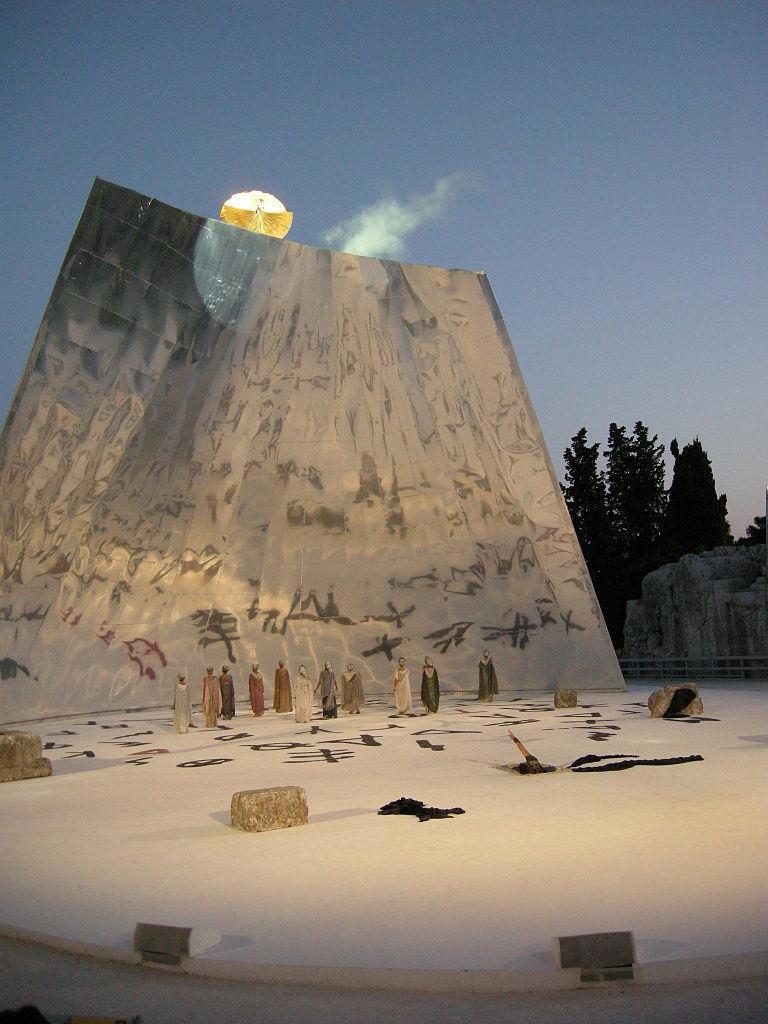 Постановка Еврипидовой «Медеи»: золотая колесница бога Гелиоса является, чтобы спасти главную героиню