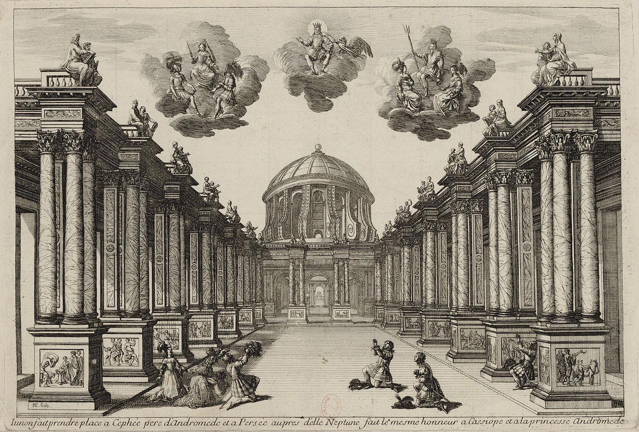 Парящие над сценой боги в постановке «Андромеды» Корнеля