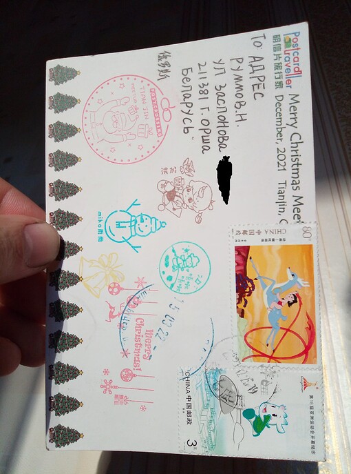 Август 2023 - один из отправителей нашелся. Это группа, сообщество анонимных людей которые путешествуют вслед или перед почтовыми открытками. Ещё раз подчеркну - они абсолютные инкогнито. Не знаю зачем и это? Точней, догадываюсь почему... Просто техника безопасности и проверка адекватности новых знакомых. Но мне кажется, что вопрос-ответ про свою коллективно-неизвестную открытку из новогоднего Китая я задавал больше чем год назад! В любом случаи я в самом деле рад что тормоз "языкового" барьера хоть немножко ослаблен.