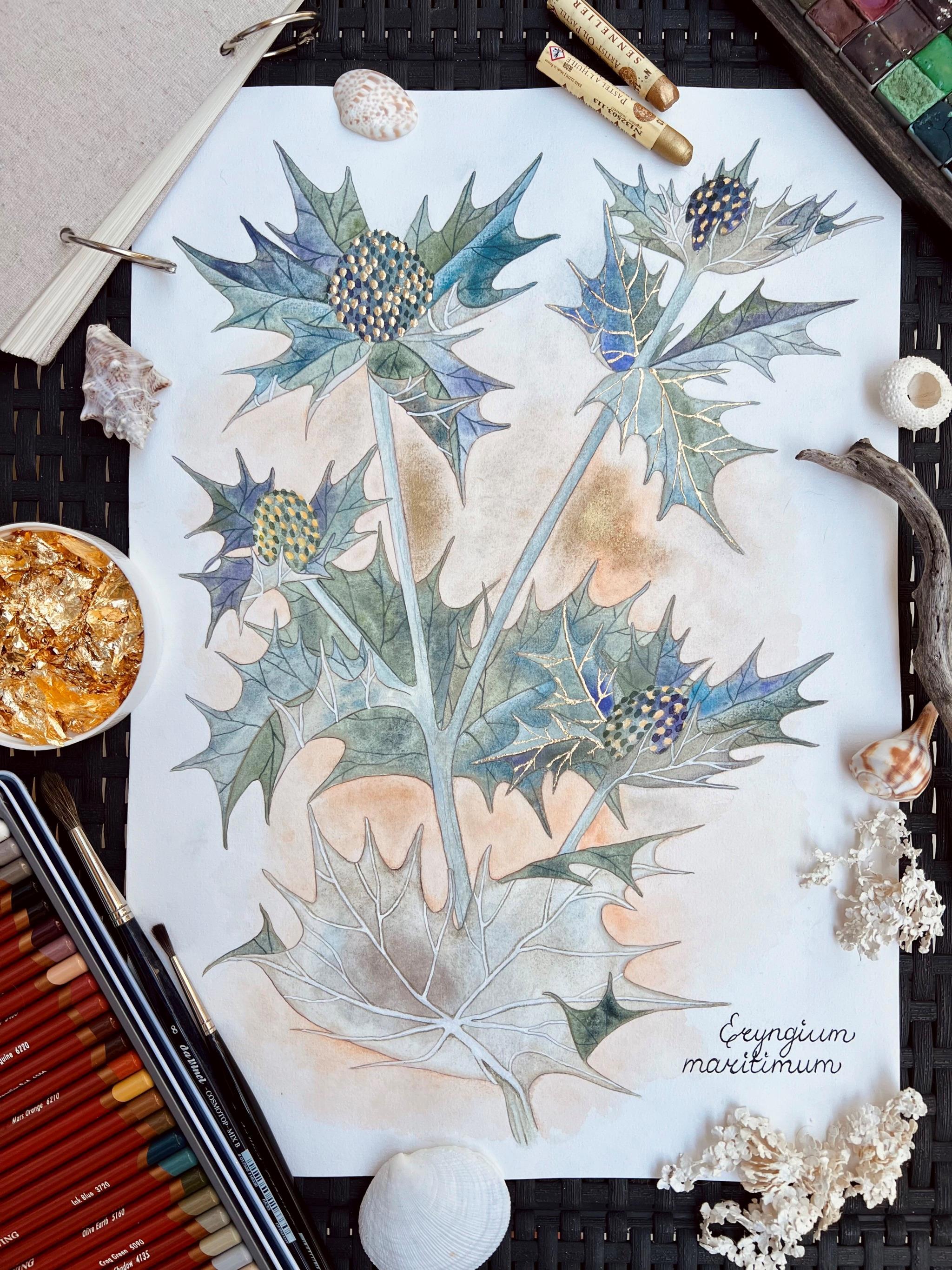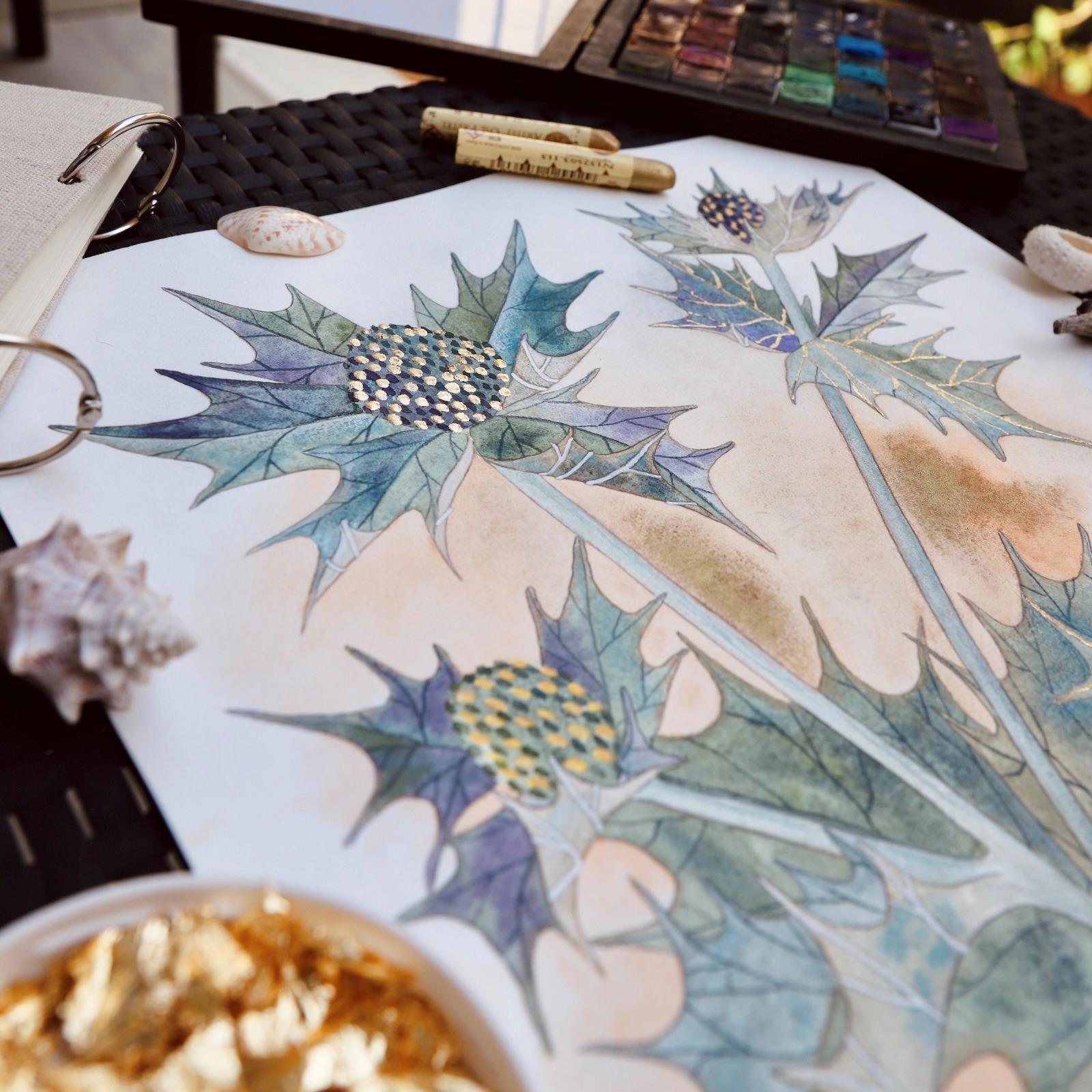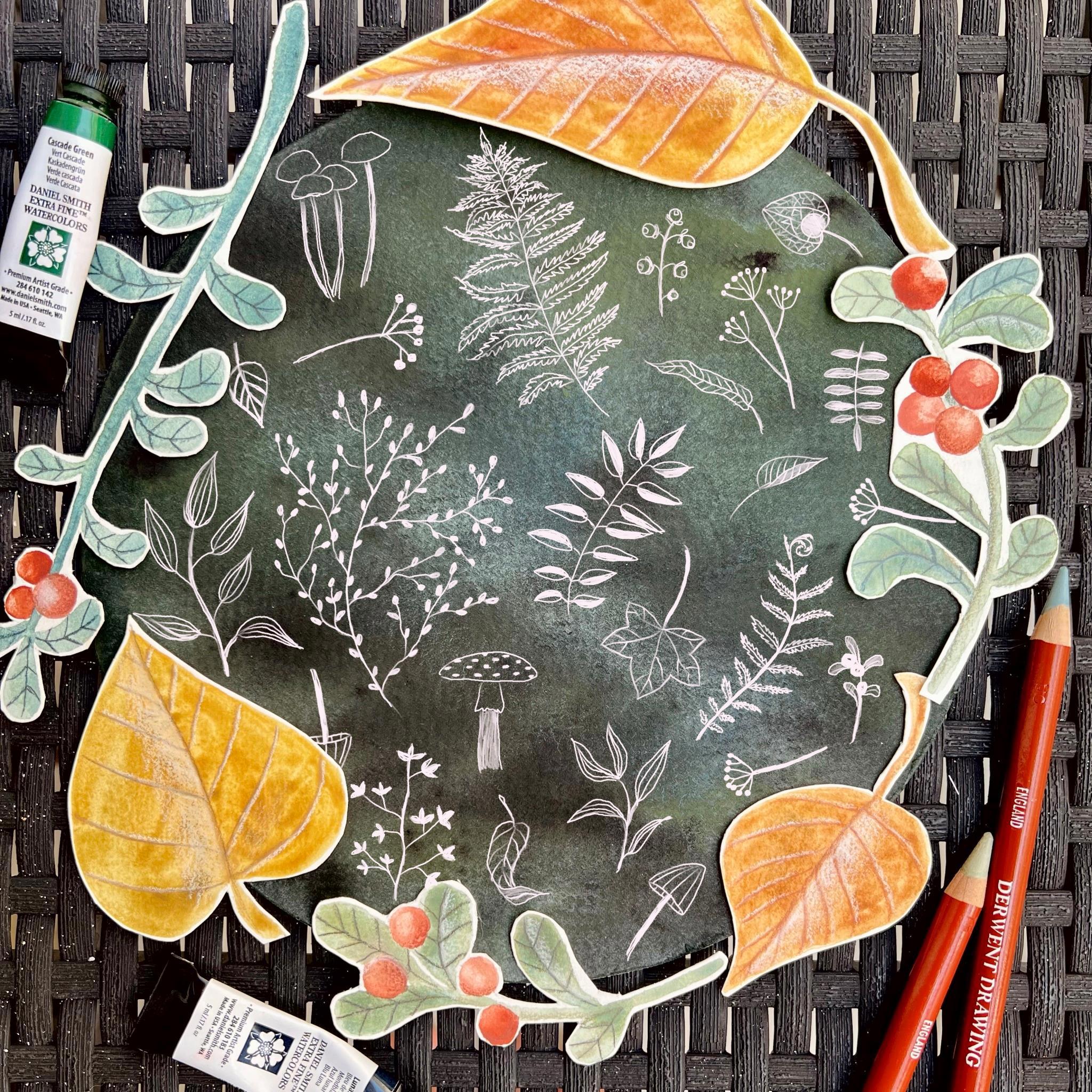 ...и "порисовать ботанические дудлы". Это, кстати, моя первая попытка совместить акварель и диджитал - для подложки я взяла часть коллажа выше, а дудлы сделала в Procreate на Ipad.