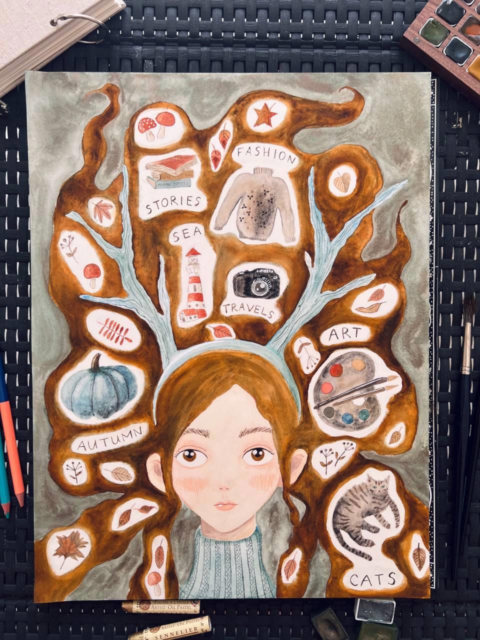 Насколько я помню, самое первое задание было по подбору палитры. Надо было взять любое фото и подобрать под него краски. Я начала читерить прям с этого самого задания - хорошо так докрутила цвета в ФШ. Но зато фото взяла свои собственные)