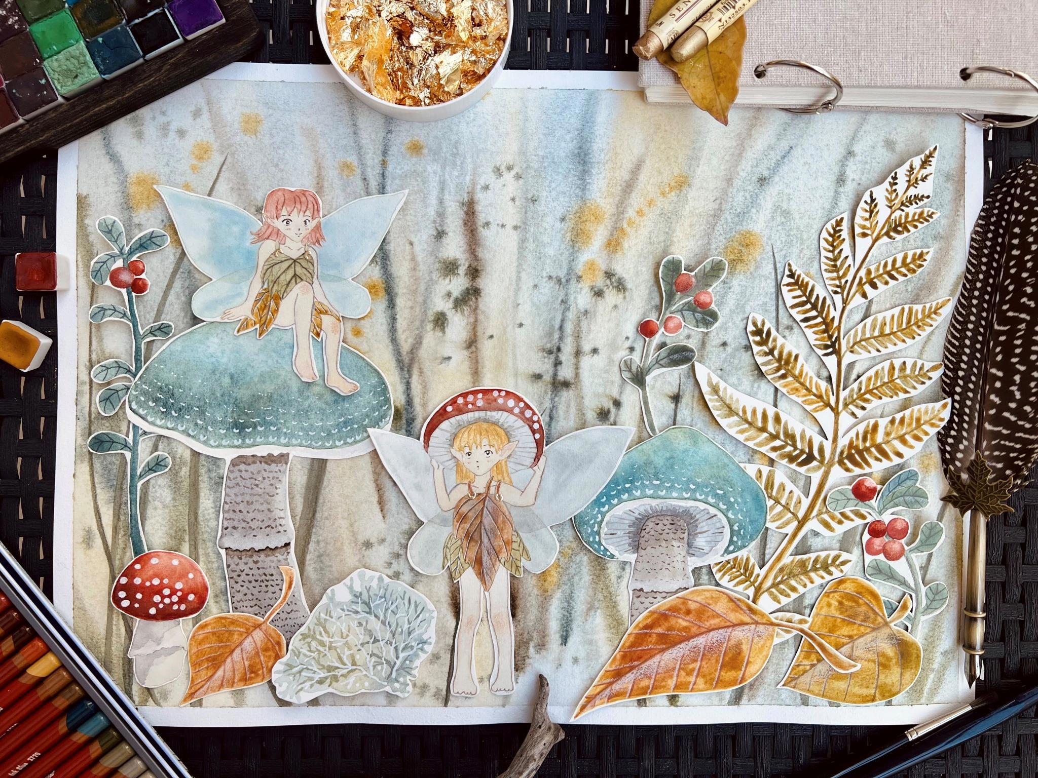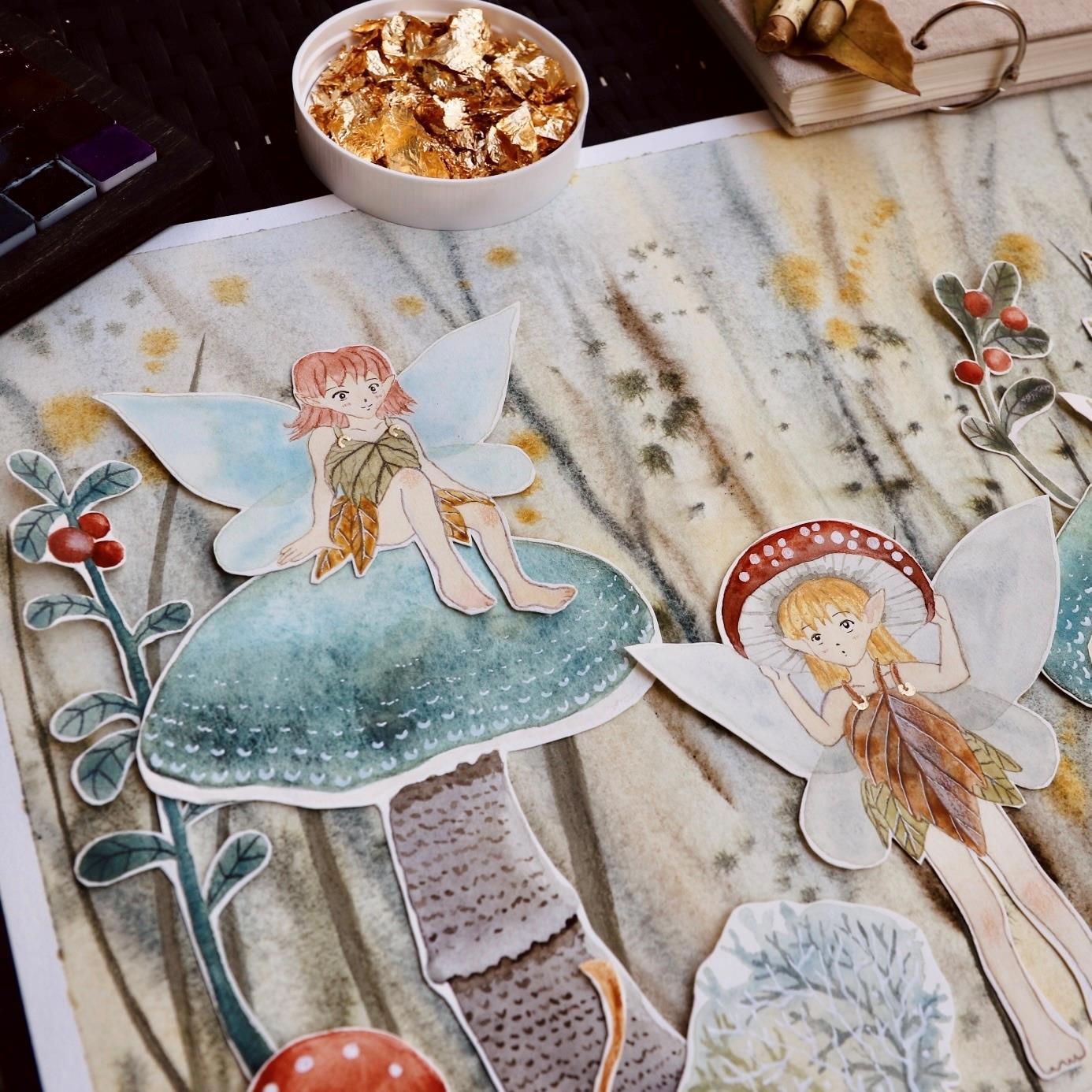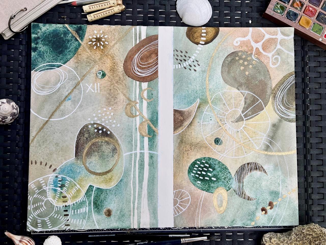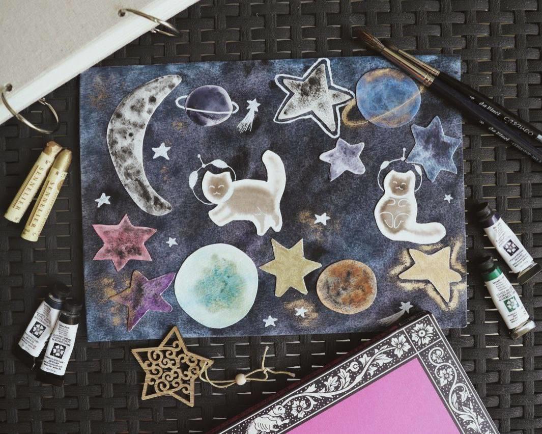 Потом было задание "просто порисовать акварелью пятна разных форм и звездочки". Неожиданно из меня попер какой-то детско-коллажный креатив)