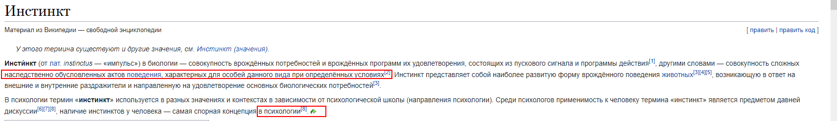И я очень и очень давно пытался там что-то спорить, даже пост этот пытался ранее опубликовать, но всё старался не поднимать бучу. Зная, что часто бывает триггер на слова о том, что конкретно инстинктов у человека нет.