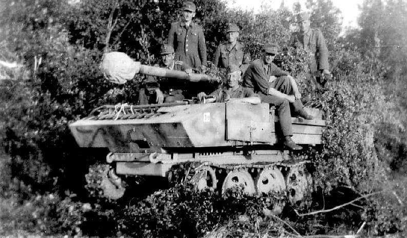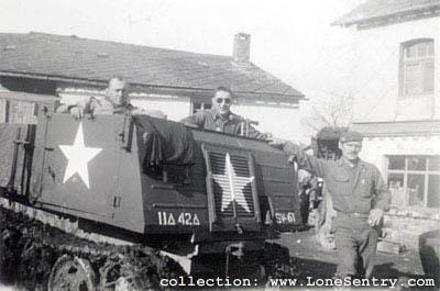 Довольные американцы с трофейным RSO/03. Британец (в берете) довольным не выглядит, не иначе, потому что места в кабине ему не нашлось. Хорошо видны рычаги, с помощью которых машиной управляли по-танковому