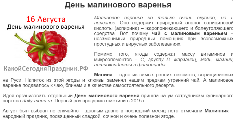 А еще я впервые сегодня узнала, что 16 августа празднуют день малинового варенья О_О