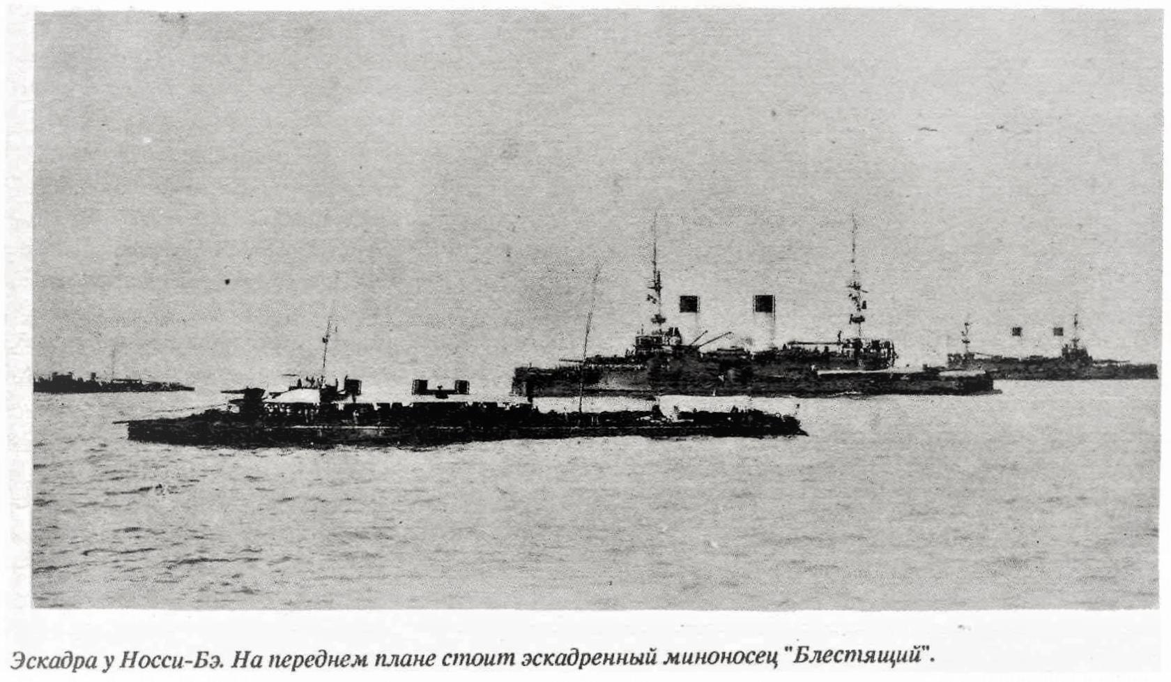 Среди броненосцев и крейсеров выделялся своими стремительными обводами небольшой, водоизмещением в 440 тонн, эсминец «Блестящий».