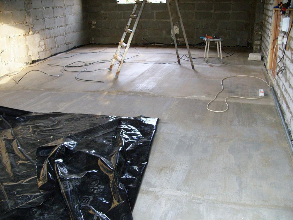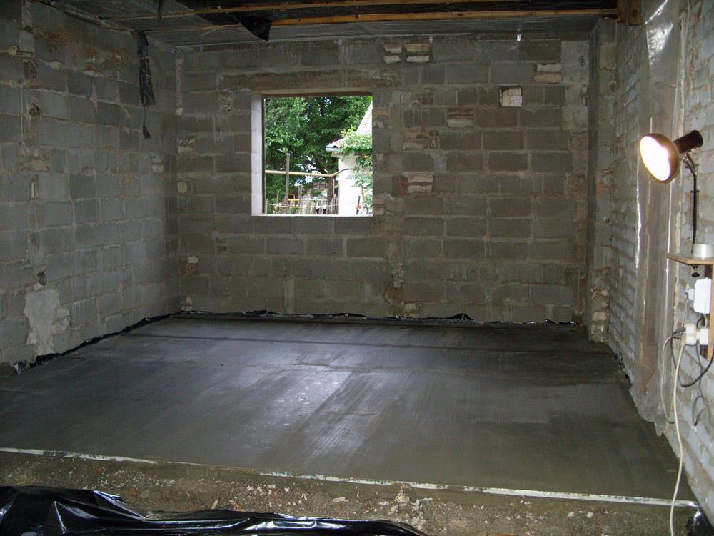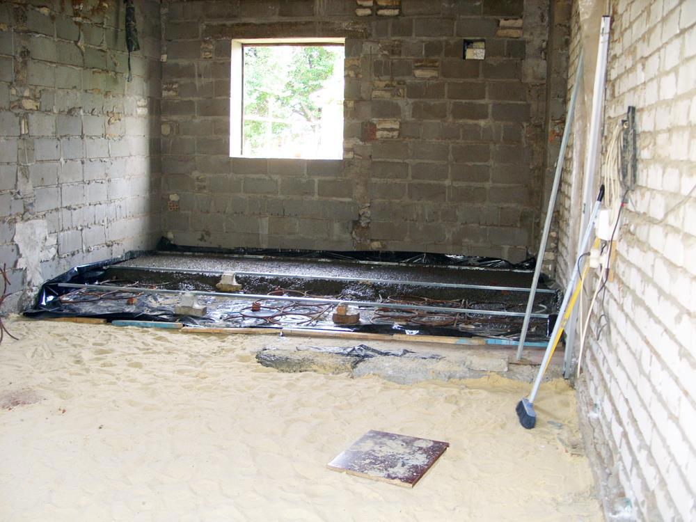 2. Подготавливаем и заливаем пол бетоном (песок, щебень, направляющие).