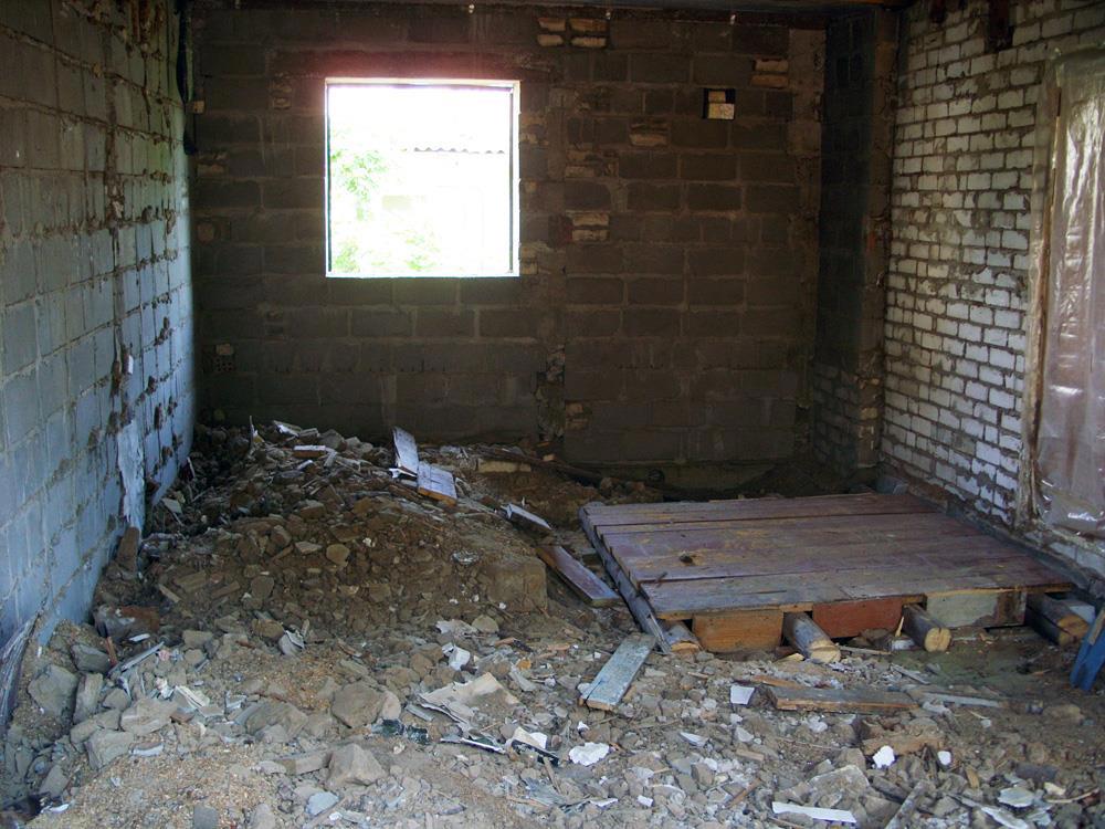 1. Ломаем старый корпус внутри. После слома вывозим мусор: понадобилось два самосвала - на грунт и древесные отходы.