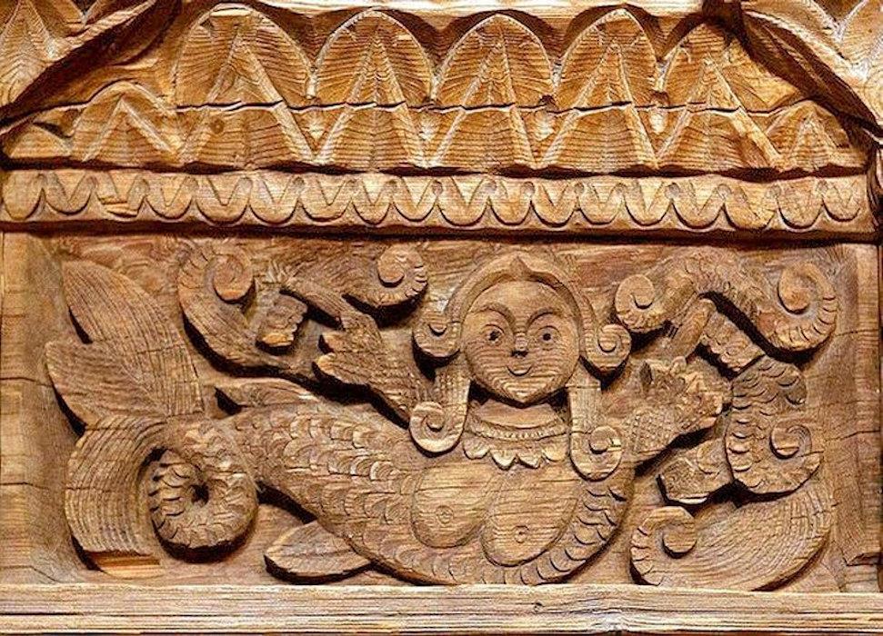 В некоторых регионах "фараонка" (пышногрудая женщина с рыбьим хвостом) – сборное название для обозначения изображений морских дев. Довольно часто такие изображения встречаются в деревянной резьбе кораблей, домов и т.д.