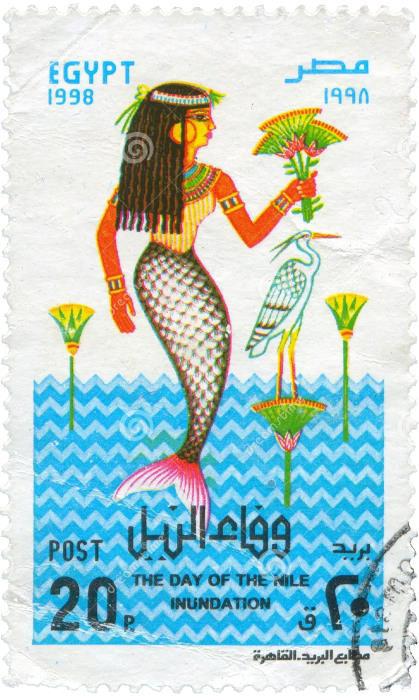 Прежде, и во времена фараонов, и задолго до них, разлив Нила был одним из главных праздников в Египте. Потому что Нил, или, как его называли – Река, был гарантом процветания. Дева на марке, как я понимаю, персонификация Нила на современный лад. Потому что "река" в древнеегипетском языке (и, к слову, в современном арабском) – мужского рода. Так что к историческому и культурному контексту эта дева относится слабо. Но красивая, за это девам можно многое простить )))