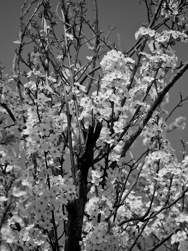 Это была просто весна. Первый цвет на еще голых деревцах. И кажется, что в обесцвеченном варианте получилось выразительнее.