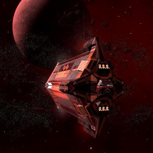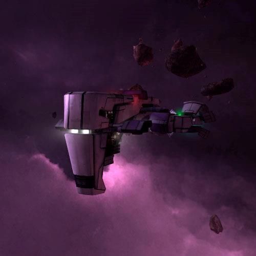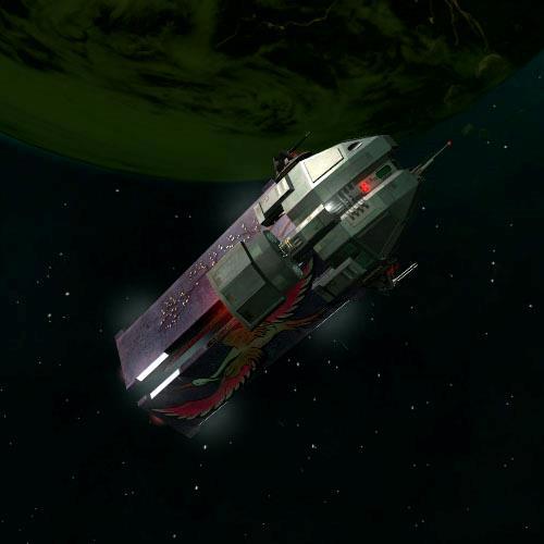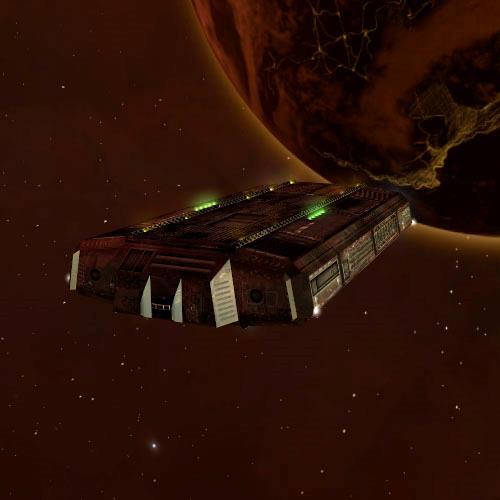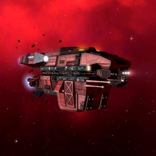 Тут двух турелей не видно, но они есть. Но собственно корабль героя там получается в результате доработки большого транспорта напильником до такого вот: