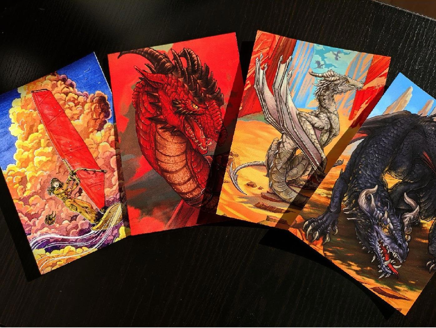 Всем читателям, оформившим подписку на книгу в течение месяца (то есть до 18 сентября) я хотела бы подарить набор открыток по Архипелагу - трех драконов с острова Фуэрте и Дийну в полёте