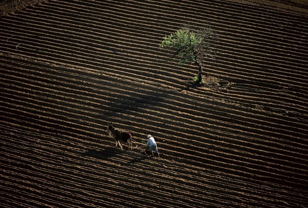 Фермер пашет свое поле, регион Лассити, Крит, Греция