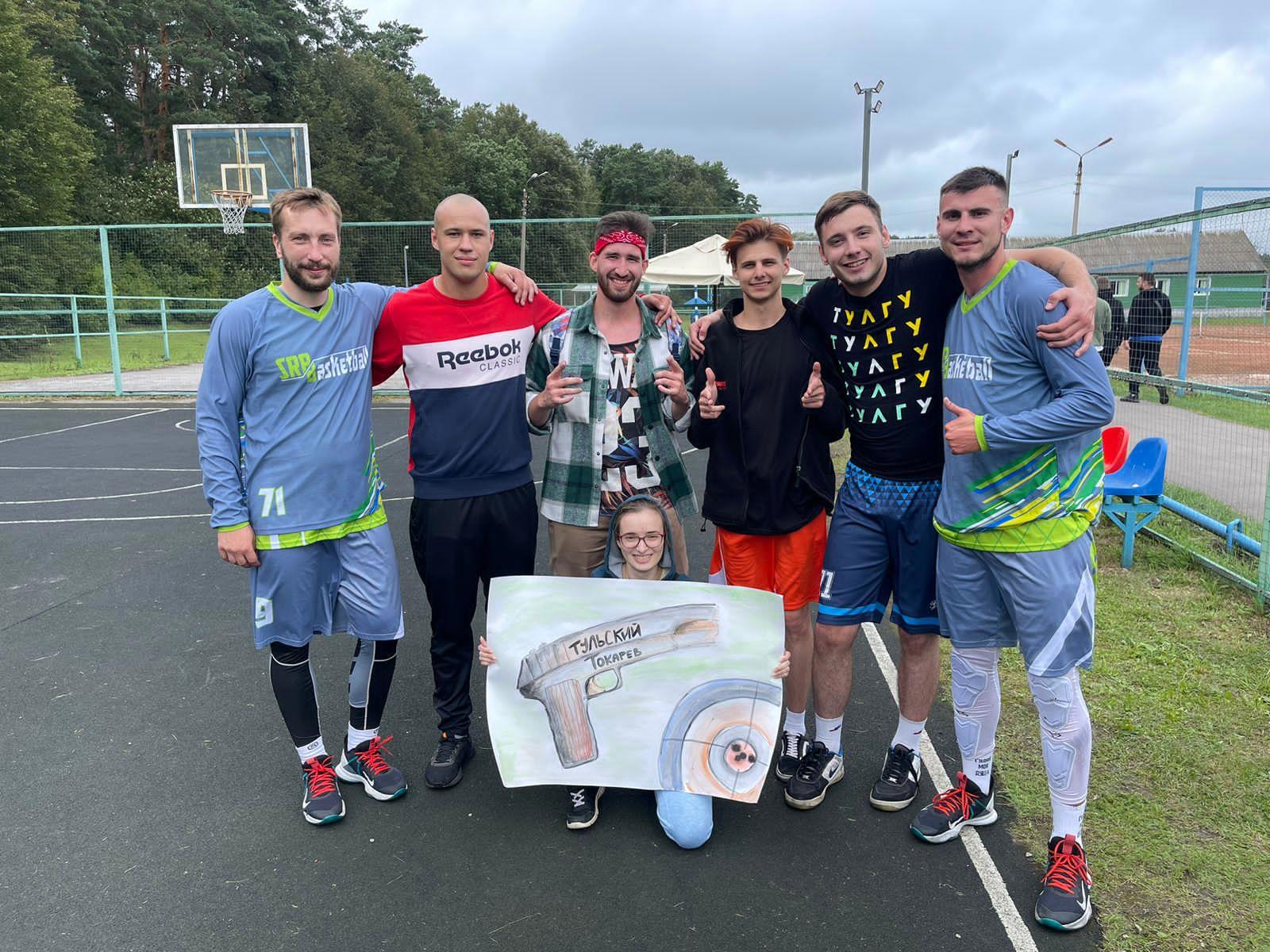 Я такой себе спортсмен, поэтому надо было стать хорошим болельщиком и сделать крутой плакат. Да, одна из наших команд называлась "Тульский Токарев"(ТТ) в честь пистолета. Я туляк до мозга костей, ещё и с [исправлено: буквой "гхэ"], который узнают москвичи)))