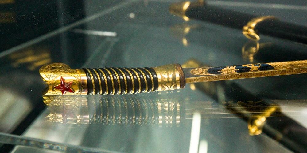 Музейная копия шашки министра с гравировкой «Буденновцу Славскому Ефиму Павловичу»
