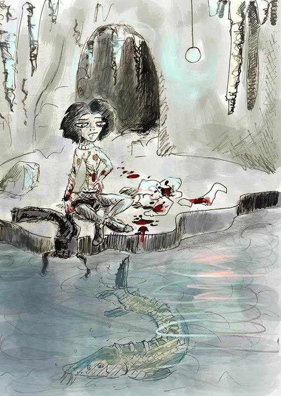 Даже испуганная и снедаемая беспокойством, Эрмина не могла не оценить совершенство гибкой фигуры. Риольф спустил штаны почти до колен, когда его повело в сторону и, запутавшись в штанинах, он свалился прямо в воду. Эрмина подскочила, чтобы помочь, но внезапно тело задёргалось в конвульсиях, его контуры словно расплылись, подёрнутые туманной дымкой. Спина ощетинилась плавником, тело переломилось пополам, уходя в глубину, а мощный хвост ударил по воде, окатив Эрмину фонтаном брызг.
