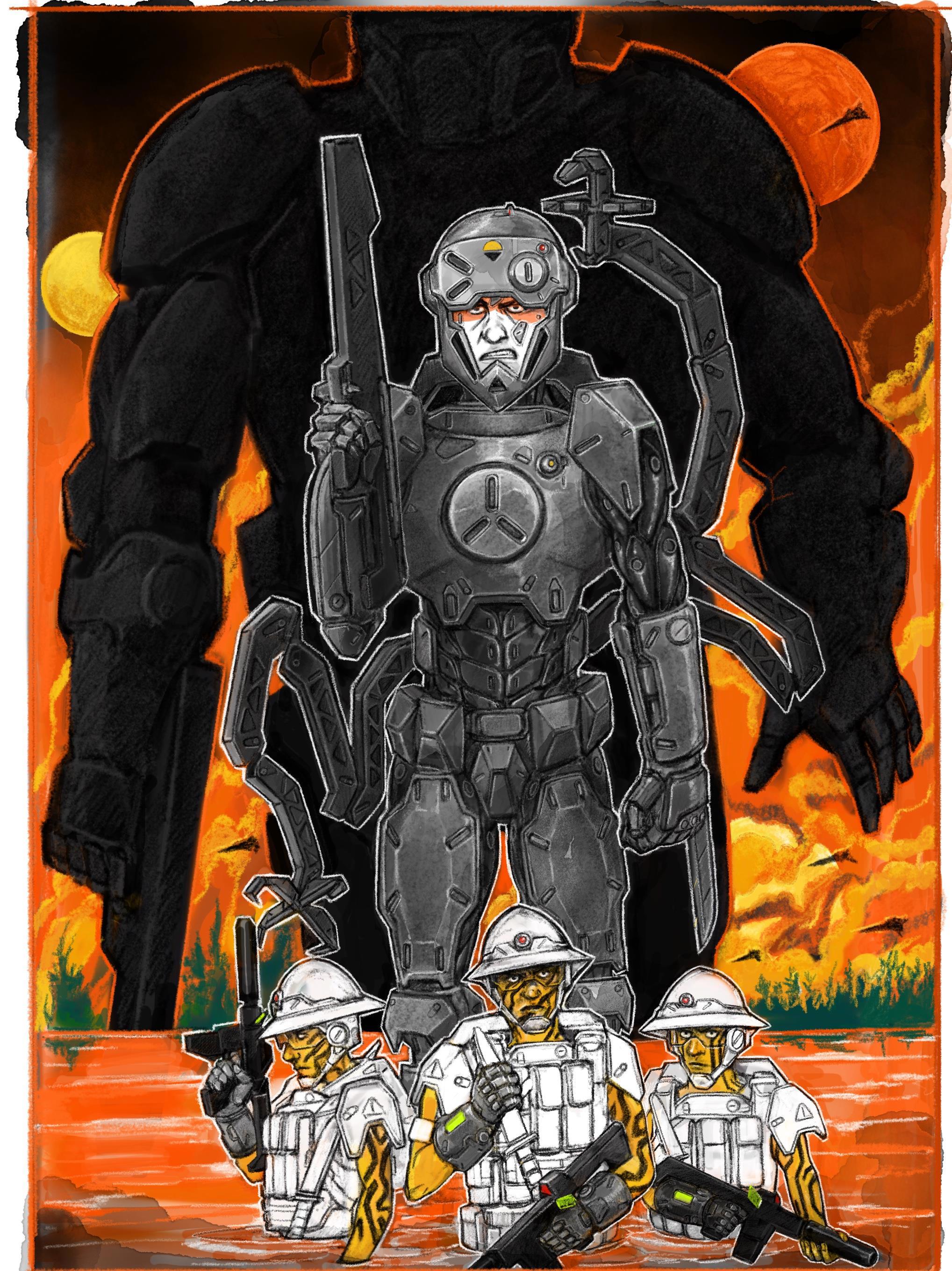 Я знал, что сразу показать несколько вещей - в идеале террикан, кимарцев и имперцев - но главное, чтобы обложка чем-то вызывала в памяти постеры к «Апокалипсису сейчас». Закат, вертолеты, горящие деревни, мрачняк.
