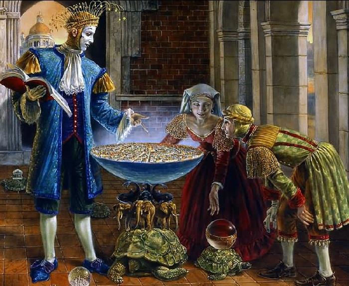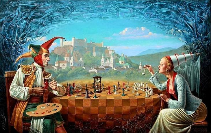 Непросто так я поставила эпиграфом к этому посту картину художника сюрреалиста Михаила Хохлачёва, она очень точно передает смысл игры. Игрок дает направление движению персонажа, наделяет его мыслями и чувствами. И вот персонаж живет, любит, страдает, удивляется, и вместе с ним живет игрок, а за всем этим волшебным действом с упоением следит читатель. А вот вам более сложная многоходовка, похожая на русскую матрёшку.