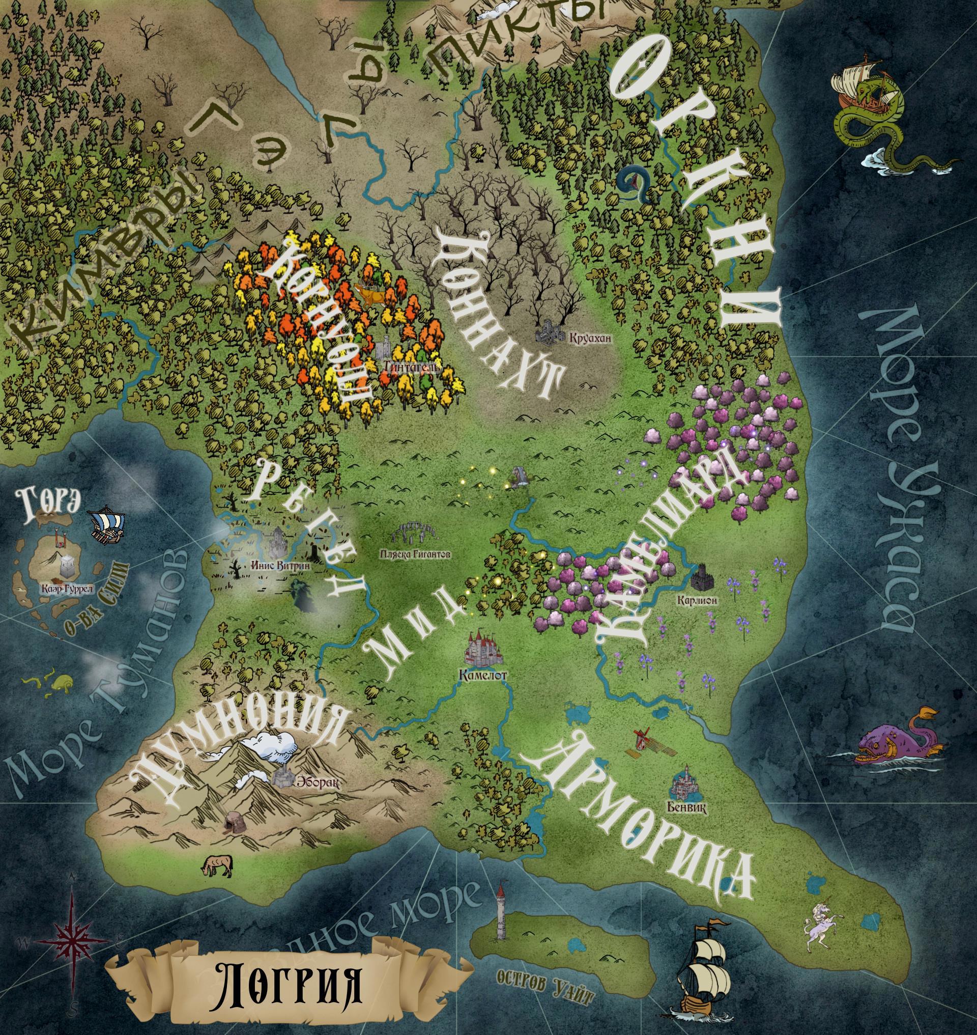 Карта Логрии (цветная, с картинками)