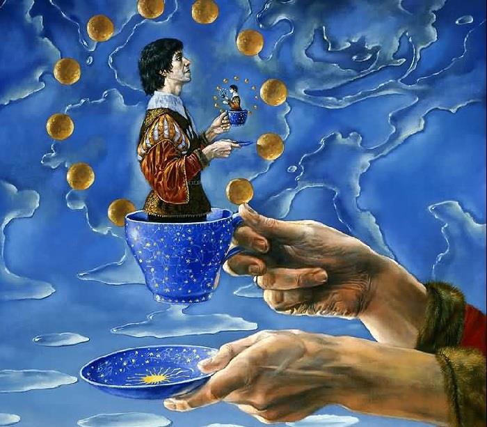 Как попадают в фантастические миры? Способов в разных книгах описано много. Но зачем куда-то попадать, если можно эти миры создавать. На что может быть похож новый мир? Он может быть похож на полотно, которое ткут Богини судьбы, на многогранный кристалл, новый мир может зародится в чашке чая или в стакане воды. Меня вдохновляли работы художника сюрреалиста Михаила Хохлачёва