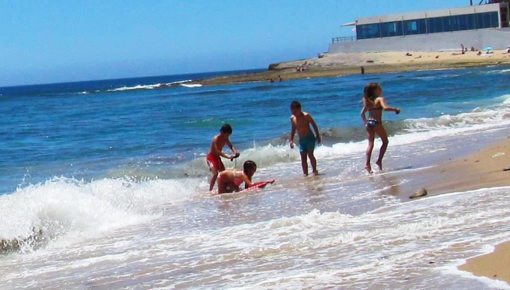 В первом же магазинчике – овощном – купили две бутылки «Сангрии». Ну, чтоб на пляже… Там песочек, а под водой неглубоко камни. Плоские такие – удобно сидеть. А волнищи! И водичка так себе, свежая – градусов 16 – 17. И зимой, и летом одинакова. Океан! И холодное Канарское течение.