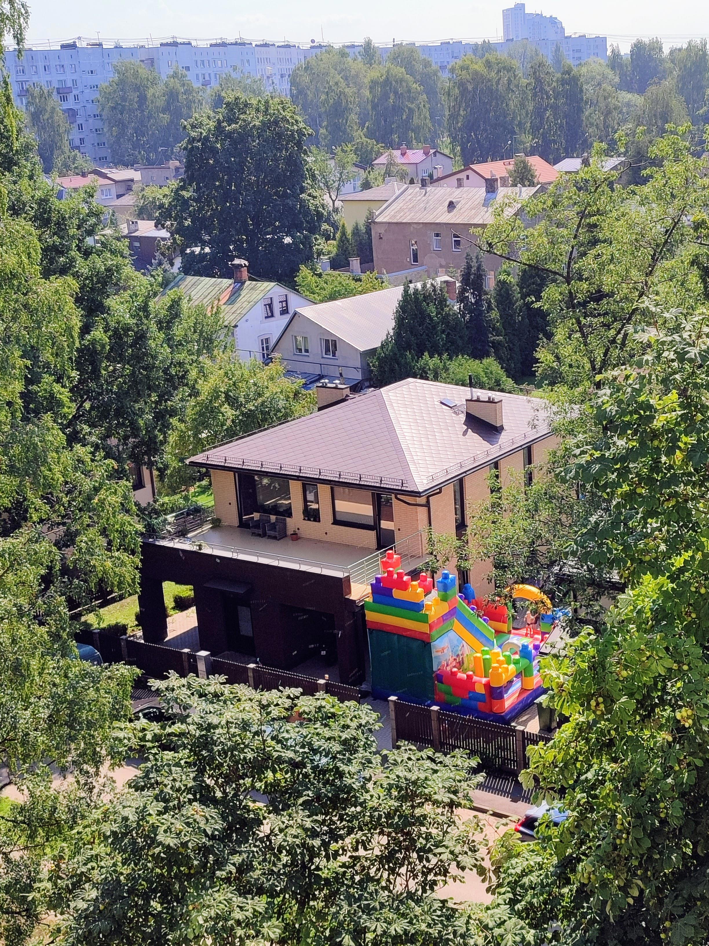 Бегу скорей, вдруг что случилось. К счастью, ничего такого, что требовало бы вмешательства. Но вот не сфотографировать происходящее было бы непростительно. Ибо внизу, в частном доме напротив, разворачивался детский праздник.