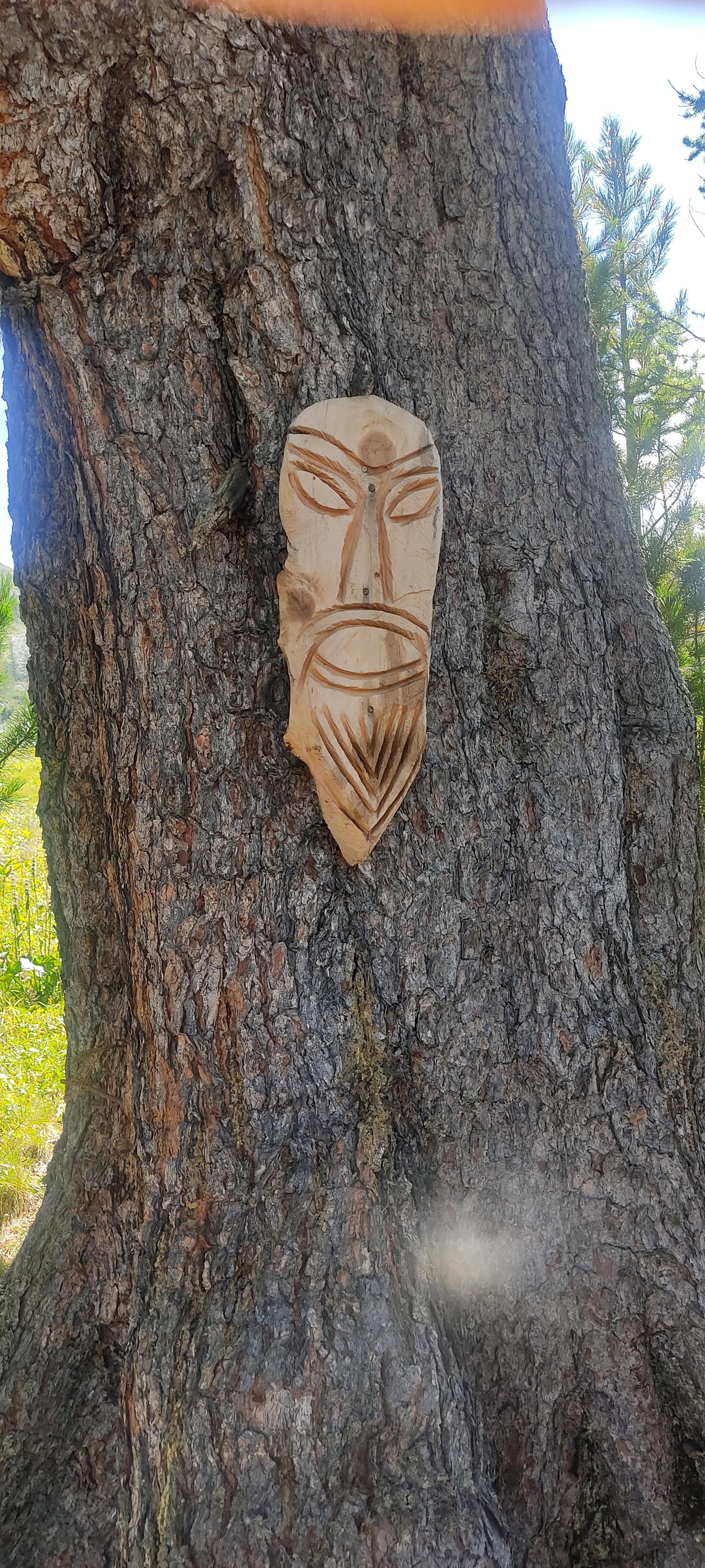 Это портрет Хозяина-лешего, он тоже призван беречь край от ненасытных браконьеров. Народно-туристическое творчество.