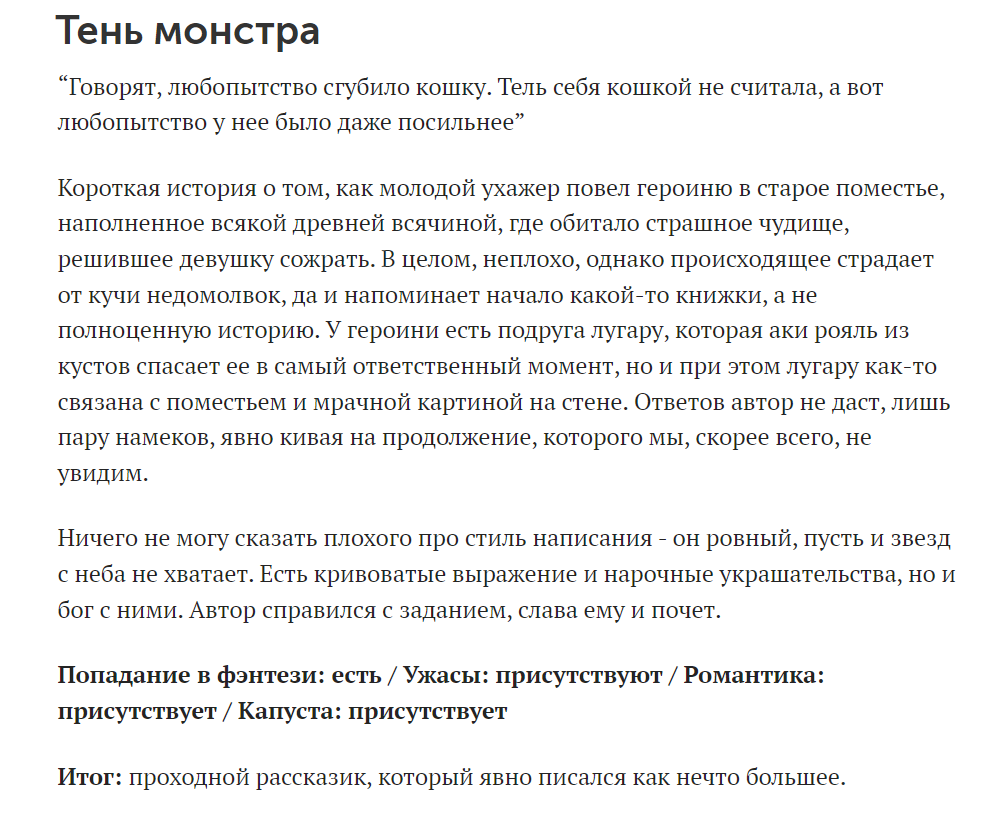 Работа не опубликована, как справедливо заметили жюри - получился кусок от чего-то большего. Полежит в закромах, выправлю, допишу, придумаю обложку - и вот тогда уже можно будет публиковать. Впрочем, если кому интересно, как конкурс, так и первоначальный вид работы, то можно обратиться по этим ссылкам: